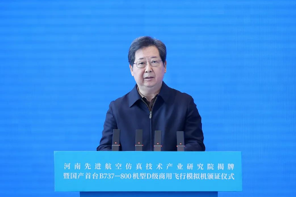 樓陽生代表省委和省政府對研究院揭牌和商用飛行模擬機取證表示祝賀。他指出,航空模擬仿真是飛機研發(fā)制造、飛行員培養(yǎng)過程中必不可少的跨界高端技術(shù)和關(guān)鍵環(huán)節(jié),也是虛擬現(xiàn)實、增強現(xiàn)實等前沿創(chuàng)新的重要應(yīng)用領(lǐng)域,潛力巨大、空間廣闊。要聚焦服務(wù)國產(chǎn)大飛機戰(zhàn)略,打造一流航空科研平臺,不斷提升河南航空產(chǎn)業(yè)發(fā)展水平和能級,以航空經(jīng)濟高質(zhì)量發(fā)展助力現(xiàn)代化河南建設(shè)。