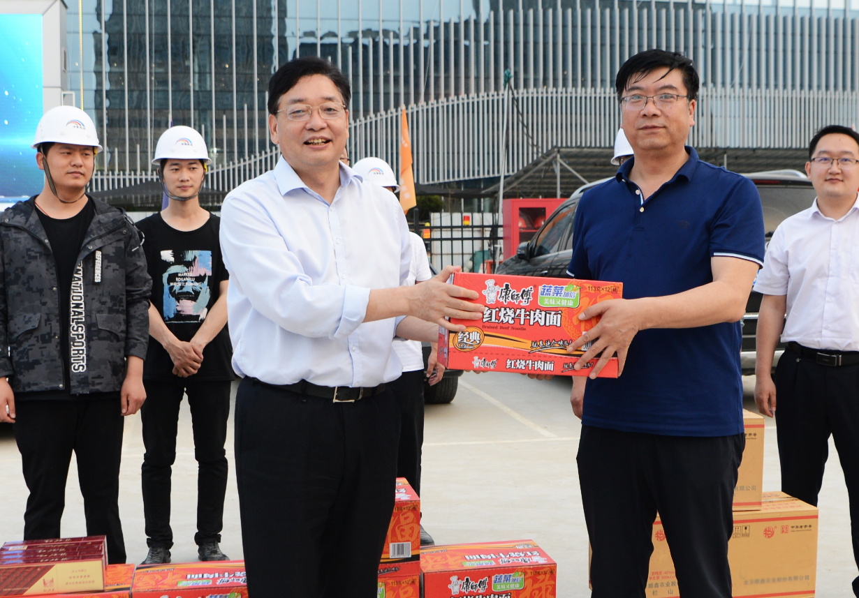 5月20日下午,河南航投黨委書記、董事長張明超和總經(jīng)理、黨委副書記、副董事長劉建葆等公司領(lǐng)導(dǎo)來到BAA(中國)航空培訓(xùn)中心建設(shè)工地,深入了解項目進展情況,指導(dǎo)建設(shè)工作,看望慰問奮戰(zhàn)在一線的干部員工,為大家加油鼓勁。