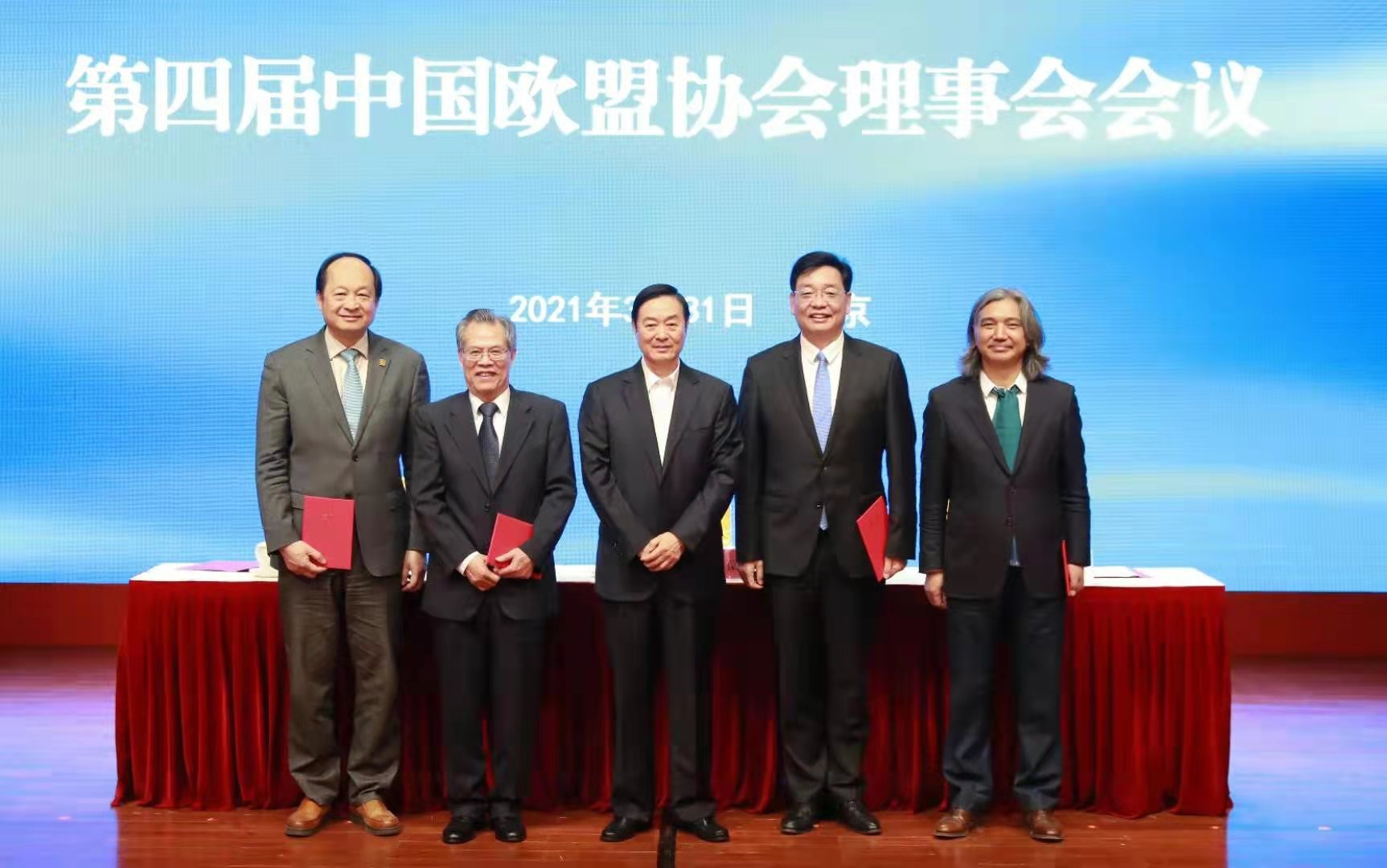 On March 31, 2021, The 4th Meeting of the Council of European Union Association (CEUA) in China was held in Beijing. Liu Qibao, vice-chairman of the National Committee of the Chinese People's Political Consultative Conference (CPPCC), was elected chairman of the China-Europe Association council and delivered a speech. Liu Qibao issued HNCA Party Secretary and Chairman Zhang Mingchao with the certificate of director. Zhang Mingchao spoke on behalf of the economic council during the meeting.