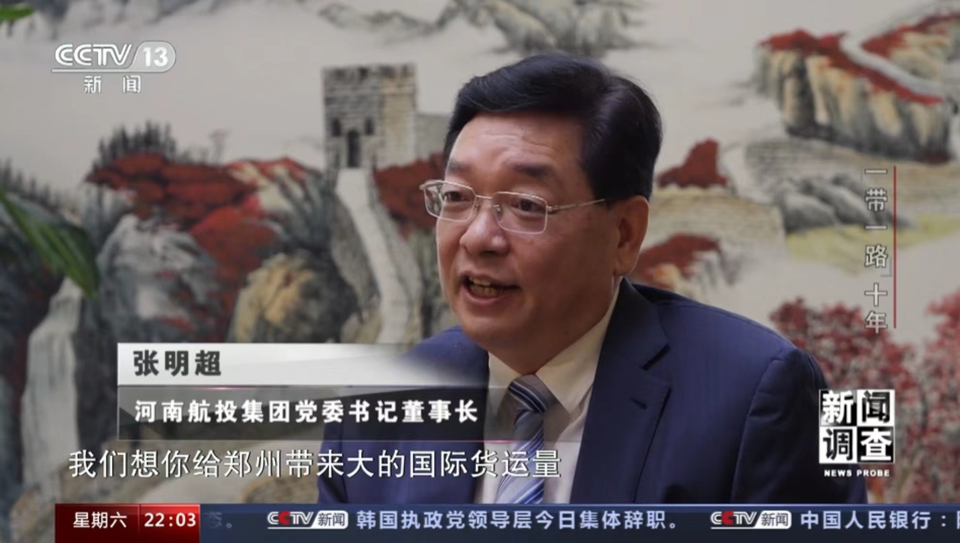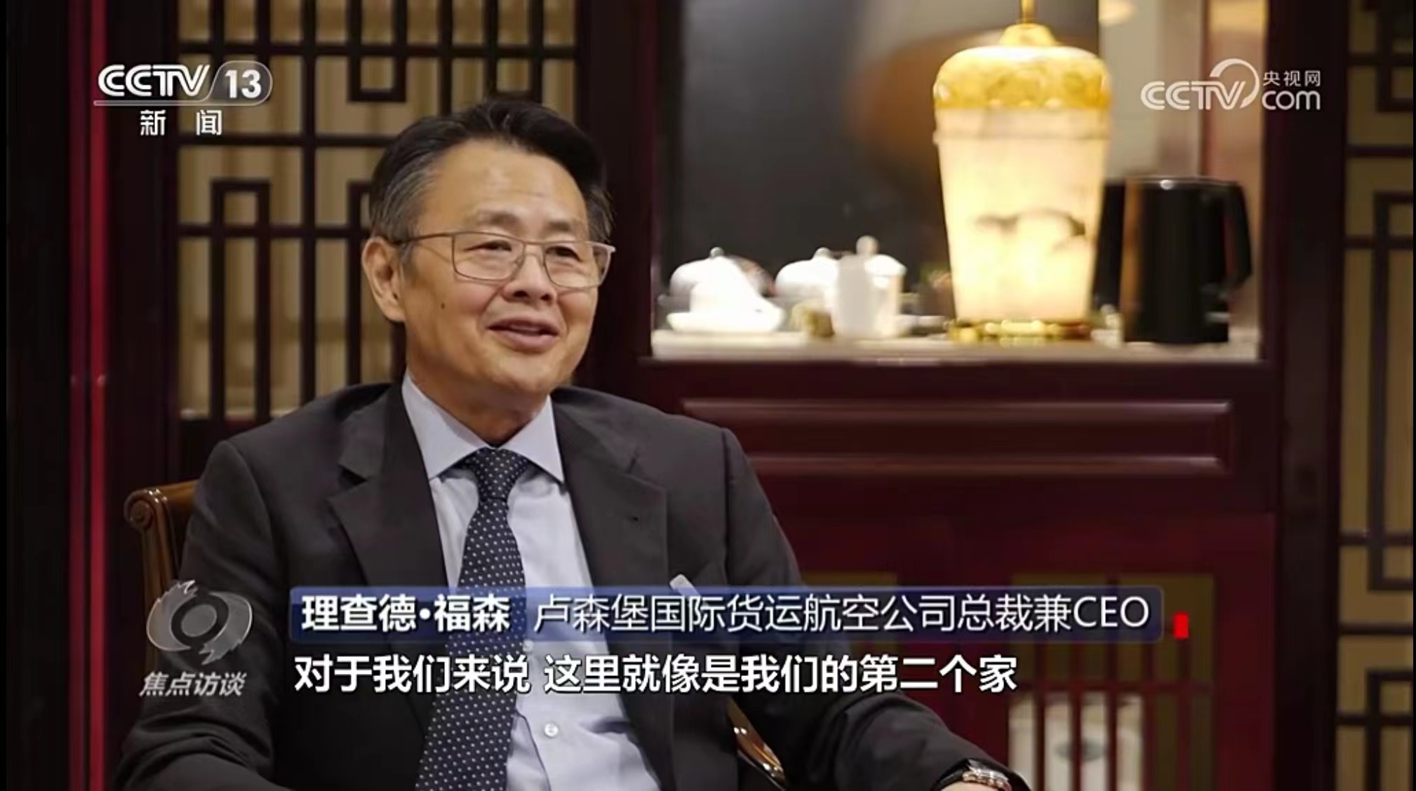10月11日,央視《焦點(diǎn)訪談》播發(fā)系列報(bào)道“絲路同行”第一集——雙向奔赴的繁榮之路。報(bào)道中說,“一帶一路”倡議的提出,讓河南明確了突破區(qū)位限制、向藍(lán)天要效益的開放思路。通過采訪河南航投集團(tuán)黨委書記、董事長(zhǎng)張明超和盧森堡貨航董事會(huì)主席湯姆·維斯格伯、總裁兼CEO理查德·福森,報(bào)道回顧了鄭盧“空中絲綢之路”十年探索實(shí)踐和豫盧之間的友好情誼。節(jié)目評(píng)論道:“(河南航投與盧森堡貨航)之間早已超越了生意伙伴這一簡(jiǎn)單的關(guān)系,多年的合作讓鄭州與盧森堡兩個(gè)航空樞紐之間的互聯(lián)互通真正實(shí)現(xiàn)了彼此雙方互利共贏和美美與共。這一切都在詮釋著‘一帶一路’倡議的核心要義?!?