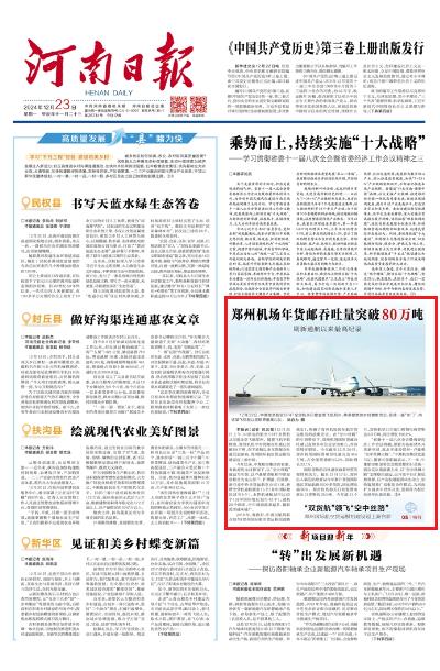 2018年,省政府、中國民航局聯(lián)合發(fā)布《鄭州國際航空貨運樞紐戰(zhàn)略規(guī)劃》,明確了鄭州機場國際航空貨運樞紐的戰(zhàn)略定位。在“空中絲路”的引領(lǐng)帶動下,鄭州機場國際貨郵吞吐量已連續(xù)多年位居全國第五,外向型特征明顯。今年截至12月20日,鄭州機場國際貨郵吞吐量完成45.6萬噸,占全部貨量的57.2%,同比增長22.1%。